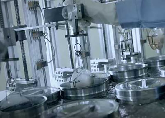 少しわかりずらい画像で恐縮なのですが、染料の入った容器にレンズを浸け置き染色しています。