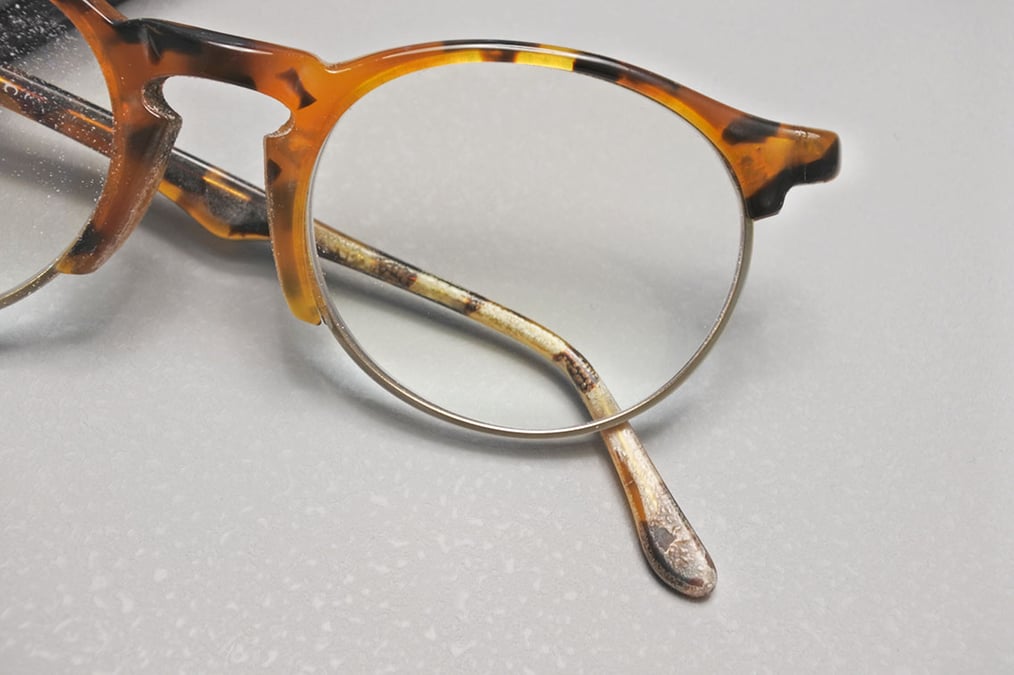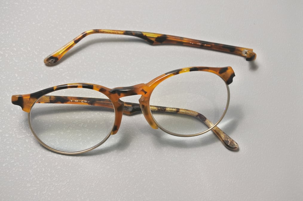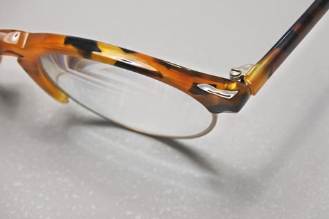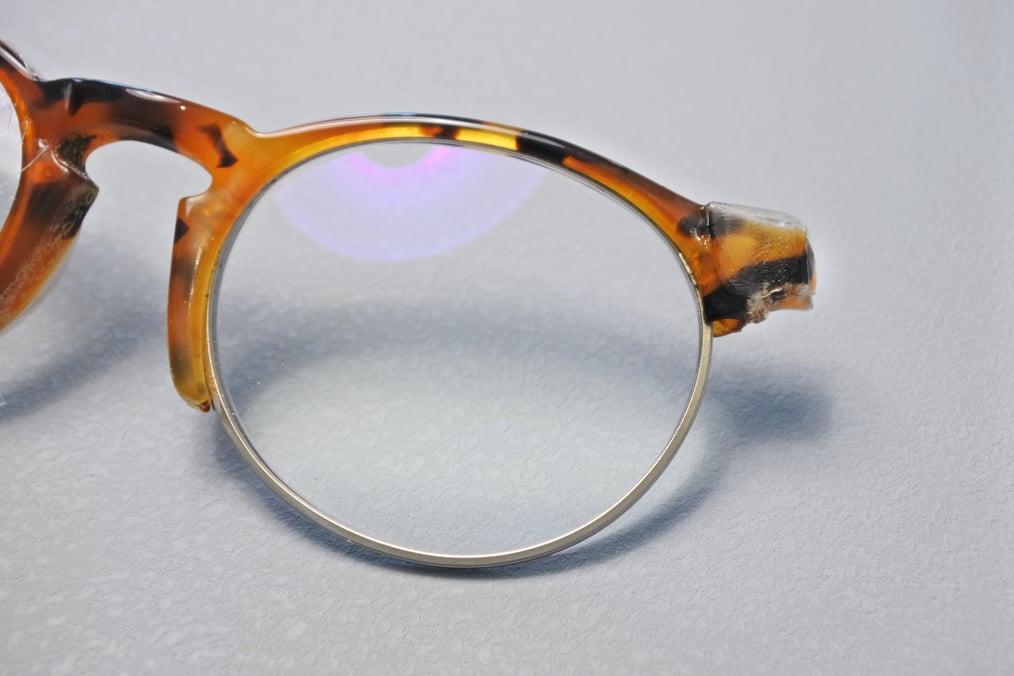 今回の「メガネColumn」は、サーモントタイプフレームの智(テンプルへと繋がる張り出し部分)が折れてしまった眼修理理のお話。